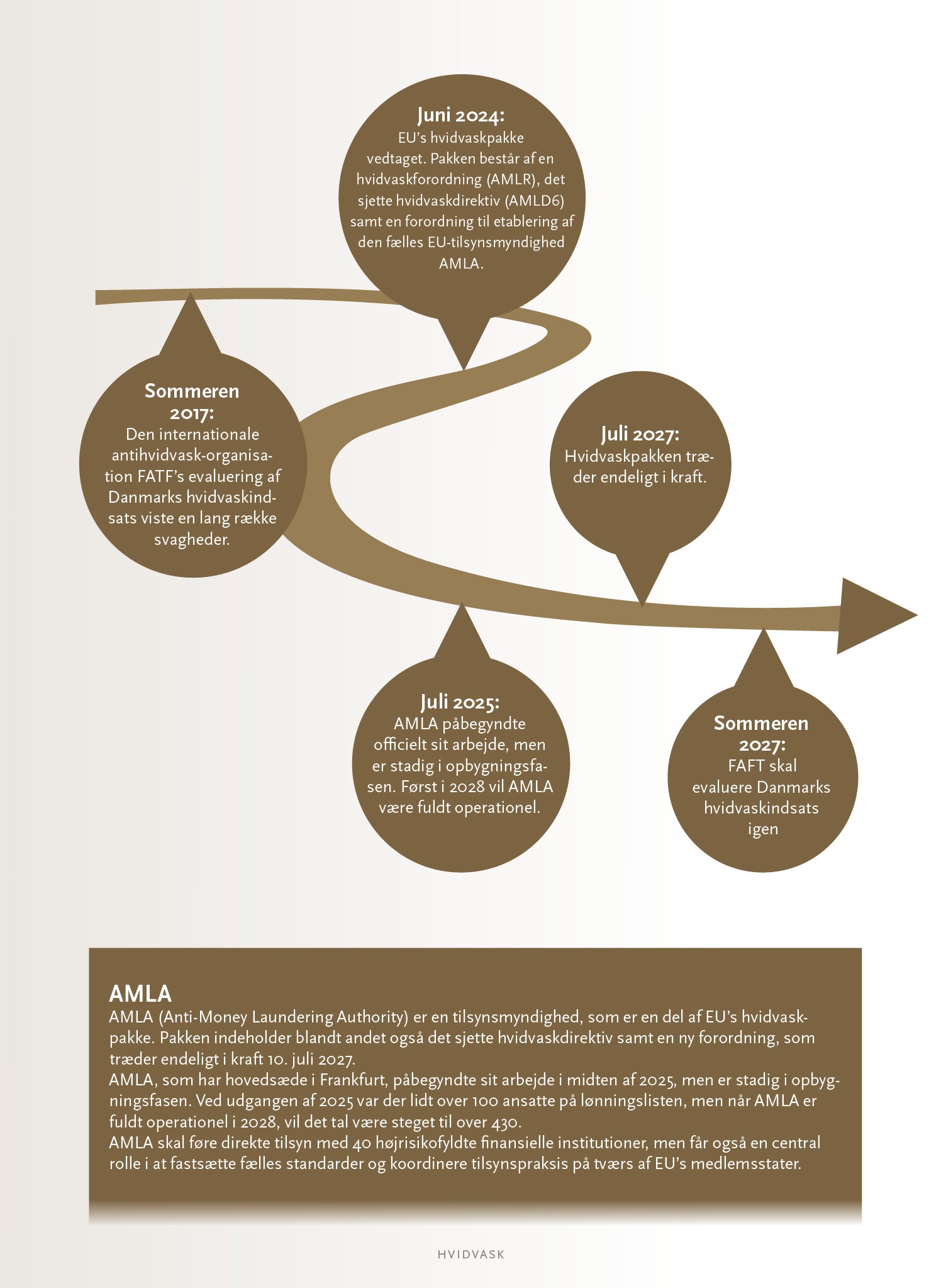 ”Næste skridt er så at indføre nogle faste politikker, forretningsgange og kontroller, som styrer og minimerer risiciene. Det betyder blandt andet løbende at overvåge klienternes transaktionsmønstre og være opmærksom på mistænkelige forhold. Hvis ikke man kan afkræfte en mistanke, skal Hvidsekretariatet underrettes.”