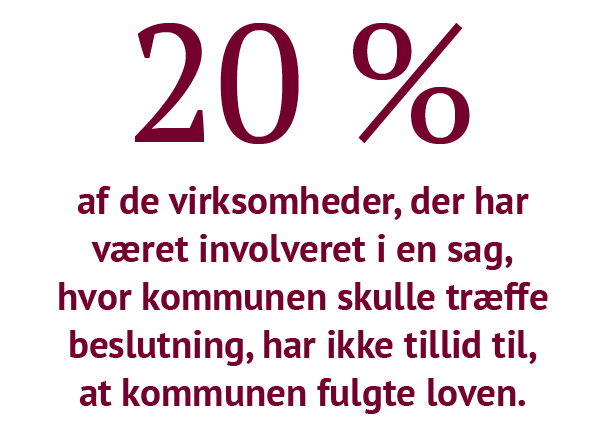 Der er stadigvæk mange borgere, som er skeptiske over for, hvorvidt myndighederne følger lovgivningen. Det er særligt kommunerne, der møder mistillid. 28% svarer, at de har lav tillid til, at kommunen følger lovgivningen. Noget, som også 25% af advokaterne mener.